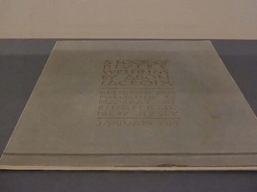 愛しのマン・レイ展 出品: 20 照度の関係で目立たないが『多様な書き方の本』の表紙は金箔で美しい。マン・レイの挿絵と、新妻アドン・ラクロアの詩が共鳴する頁は見事な書き文字で、センスが良いなと唸る。彼は最高級のイングリッシュ・ワットマン紙を使い…