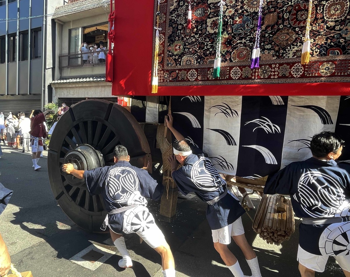08:35 エンヤラヤー 出発して東に進み、室町通角で戻り、ご町内から新町通りの辻回しへ。