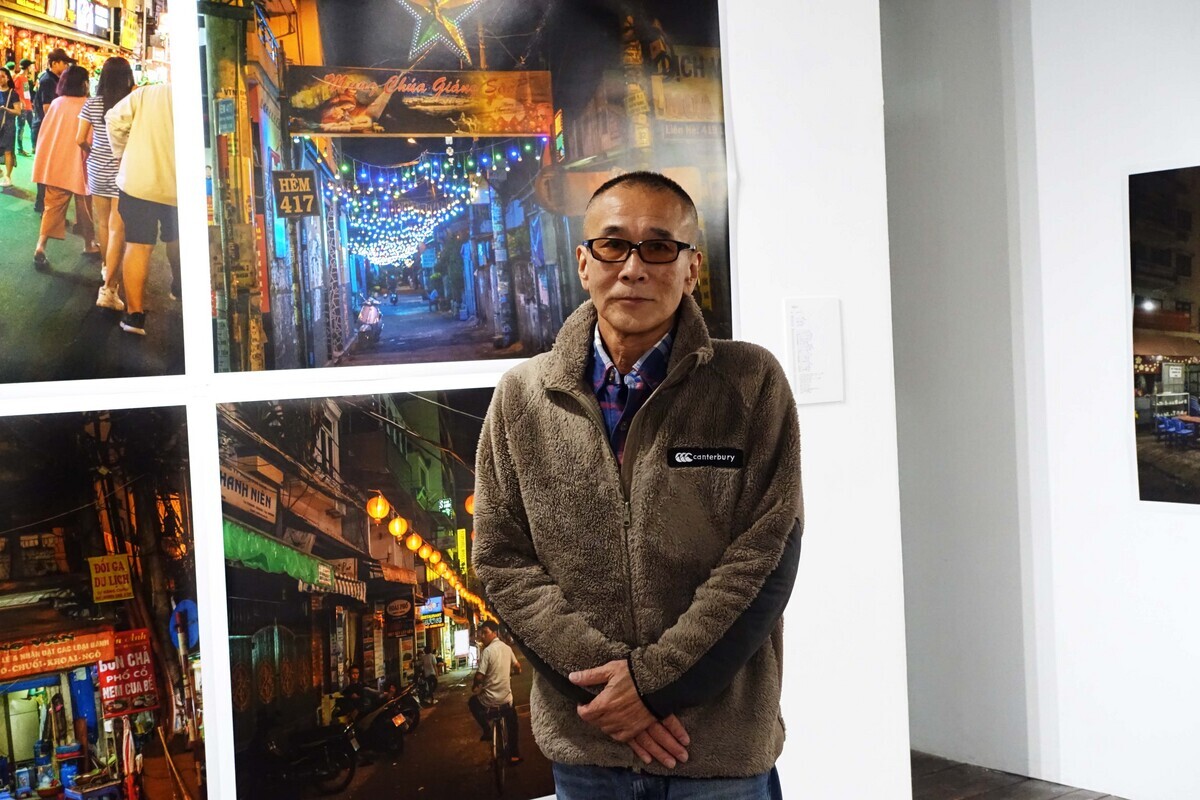 早く紹介したいと思っていたが、銀紙書房本の制作で拝見するのが遅れてしまった(本日を含めて会期は残り3日)。昨日、拝見。作者が会場にいらっしゃったのでパチリ。1960年生まれだから還暦前後の取材(ベトナム、2019-2020)であるようだ。── とすると、写歴に裏付けられた失わなかった「欲望の眼」。写真集のあとがきから引用すれば