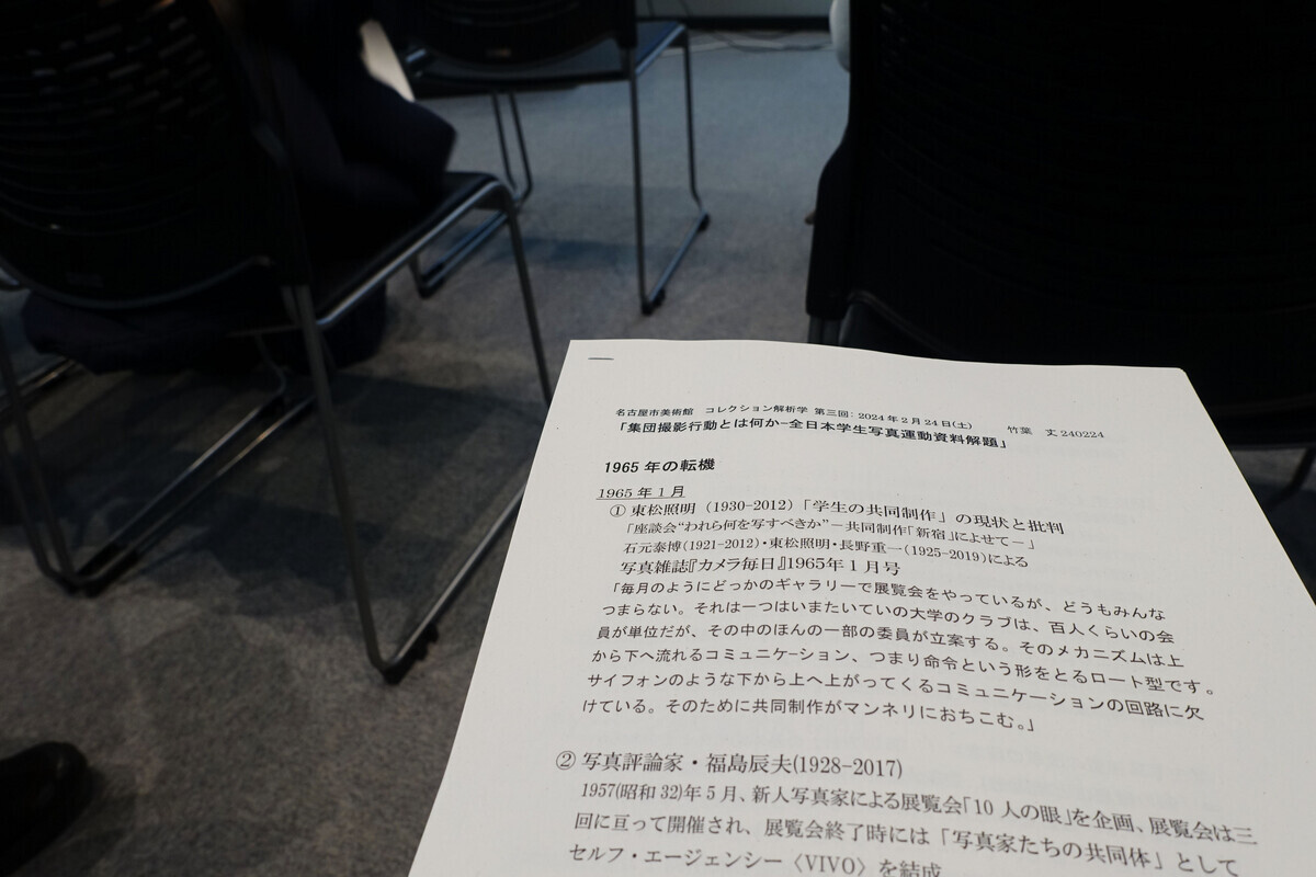 『状況1965』『状況1966』から『10・21とはなにか』『69 11/13-17 佐ト訪米阻止斗争』へと続く匿名性とアレ・ブレ・ボケの写真は、「警察の証拠写真」とならないような加工などからもプロボーグの作家に先んじた行為ではなかったか、東松が報道写真をやめた伏線、いわゆる名取との論争も明かされた(私案)。竹葉は「はっきりした意図を持って、写真を複数で提示すれば、それは単写真の持つ音量をさらに増幅する。このような群れとしての写真を、ぼくは名取氏のいう組写真と区別するために、"群写真"とよびたい。群写真はマッスとして、星雲状の塊として提示した状態をいう」(組み写真から群写真へ、1970年)と東松の発言を引用し、東松のその後の活動を示唆している。なるほど、そうでっしゃろね。