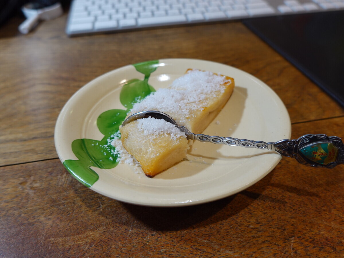 晴天なれど底冷えの京都。焼き酒粕に砂糖まぶしで、ほっこり。